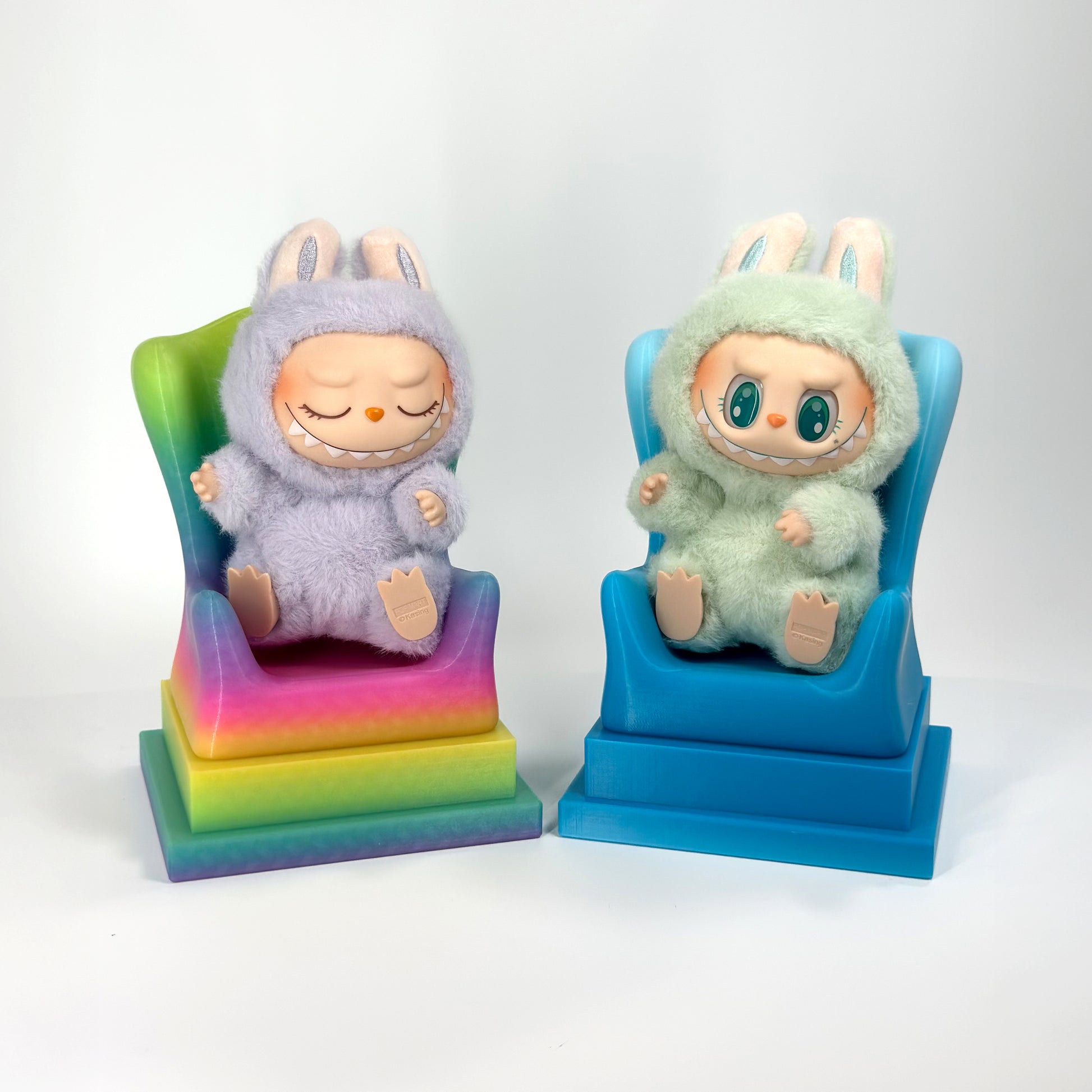 Chairz measure approx 4-5" in wide and 5-7" tall. All of our Chairz are 3D printed PLA. Custom orders for name engraving are available - please contact us for more information or custom coloring.